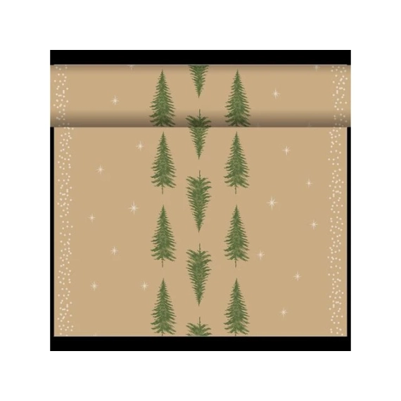 Kuvertløper på rull i serien Humble Trees, et sjarmerende design av grantrær på en snørik dag, mot en varm brun bakgrunn.Med sin rustikke stil bringer disse kuvertløperene et snev av vintermagi til ethvert rom, og skaper en koselig og minneverdig atmosfære. Perforeringen gjør bordløperne enkle å bruke. Hver rull inneholder 20stk løpere a 1,20cm lengde og passer til alle bord. Har du et fint bord som skal dekkes til, men ikke skjules, er tètè à tètè den perfekte løsning. Løperne er også flotte over heldekkende duk. Dunicel® er et unikt borddukmateriale med fin tyngde, som er ideelt til kuvertløpere,Dekk et stemningsfullt bord som uttrykker en rustikk enkelhet Beskytter ditt bord eller din duk En rull inneholder 20 løpere med målene 40x120cm