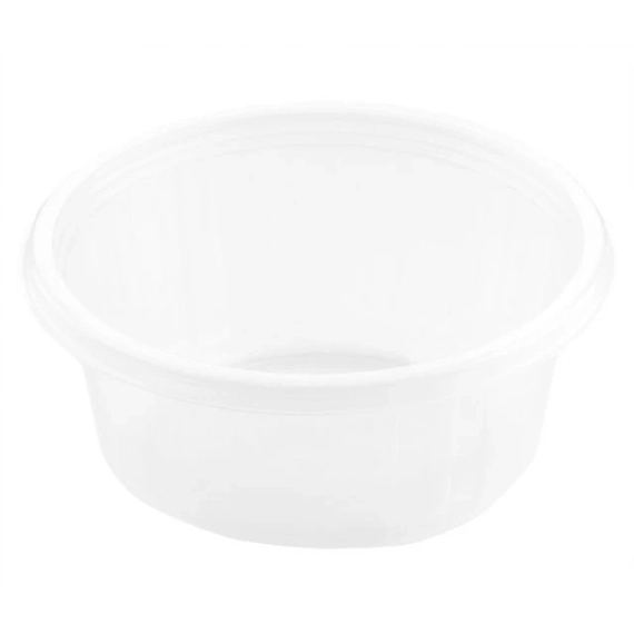 Disse allsidige matbeholderne fra Duni® er ideelle til varm og kald ferdigmat på kafeer og lunsjrom. Disse runde Fixpack®-beholderne blir helt tette når de lukkes med et separat lokk, noe som gjør dem til et allsidig alternativ for små matporsjoner. De er ideelle for en rekke typer varm og kald mat, som dip, supper, saus og diverse lett snacks. De kan i tillegg stables pent oppå hverandre, og det gjennomsiktige materialet gjør at maten presenteres tydelig i lunsjrestauranter, hurtigmatbedrifter og bedriftskantiner. Disse solide matbeholderne kan settes i mikrobølgeovn, og tåler oppbevaring av varm mat på opptil 100 °C i opptil fire timer. Laget av polypropylen og resirkuleres som plastavfall. - Plastbeholder til mat, for varm og kald mat - Brukes for å presentere ferdig tilberedte småmåltider - Ideelle i lunsjkafeer, kafeer og kafeteriaer - Kan stables - Tåler mikrobølgeovn - Egner seg til oppbevaring av mat opp til 100 °C i fire timer - Kompatibel med: Duni lokk 159143 - Én pakke inneholder 50 beholdere - Volum: 200 ml - Diameter: 112 mm - Høyde: 40 mm - Farge: gjennomsiktig