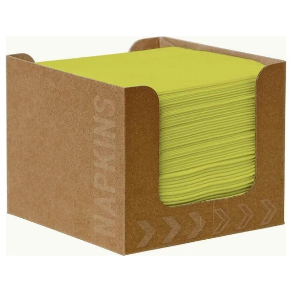 Praktiske servietter i dispenser, til cocktailer, fingermat og kaffe. Stor absorberingsevne som varer hele måltidet. - Materialkvalitet: Dunisoft Bio - Produsert med 100% fornybare ressurser. - Mål serviett: 20x20cm. - Farge: kiwi-grønne servietter i brun dispenser.