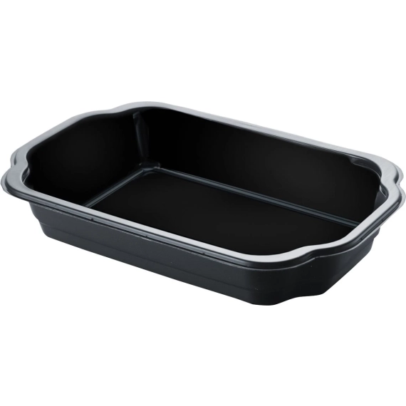 Disse brettene for take-away-måltider av fornybar plast er et ideelt valg med sine sterke kanter som holder innholdet trygt på plass. Disse beholderne av polypropylen har en svart bunn som forbedrer presentasjonen av maten som ligger inni, og de kan forsegles hygienisk for enkel transport. Brettene kan også tilpasses fra å være vakuumforseglede til å være varme eller kalde eller brukes til ferskvaresalg i kafeen, snackbaren, kantinen eller lunsjrommet. Du kan dessuten varme opp innholdet i en mikrobølgeovn uten å ødelegge formen på beholderen eller smaken på maten. Etter bruk kan de resirkuleres som plast, og de er tilgjengelige i ulike størrelser og farger.