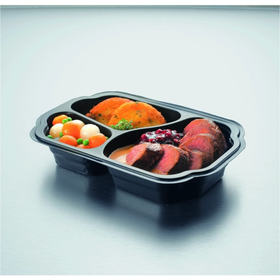 Disse Duni take-away-matbeholderne er inndelt i tre rom, slik at du kan servere forskjellig mat i hvert av rommene, noe som gjør dem til et allsidig alternativ for hurtigmatbedrifter og festivaler. De er ideelle til en rekke varme og kalde matretter som karriretter med ris eller alle retter med saus eller dressing. De er spesielt praktiske når du vil holde tre ulike typer mat atskilt før servering, og de tåler mikrobølgeovn. Disse take-away-matbeholderne av plast kan stables pent oppå hverandre, og de kan også forsegles når du skal levere mat til selskaper, tilstelninger, festivaler og arrangementer. Laget av polypropylen og resirkuleres som plastavfall.