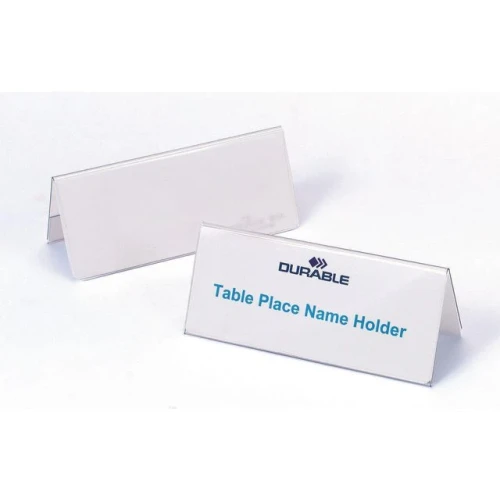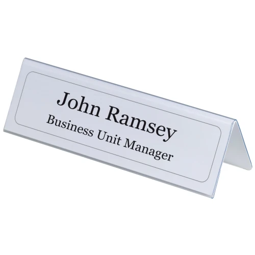 Denne holdbare bordnavneholderen er ideell til visning av navn, produktbeskrivelser og lignende, på konferanser, i resepsjonsområder og i butikker.