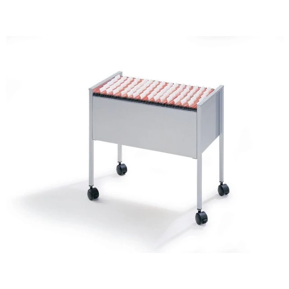 Lag et effektivt, mobilt arkiveringssystem med denne hengemappevognen som rommer opptil 80 mapper. Gjør arkiveringssystemet ditt mobilt med denne allsidige hengemappevognen. Den har fire hjul, to av dem låsbare, og ruller jevnt av gårde for å holde viktig informasjon innenfor rekkevidde. Den holdbare metallrammen og rikelige lagringskapasiteten gjør denne hengemappevognen ideell for daglig bruk på et travelt kontor. - Solid, skripebestandig design - robust, pulverlakkert metallramme - fire hjul på føttene, to av dem er låsbare - Kapasitet: 80 hengemapper - Farge: grå - Størrelse: 65,5 x 36,8 x 59,2 cm