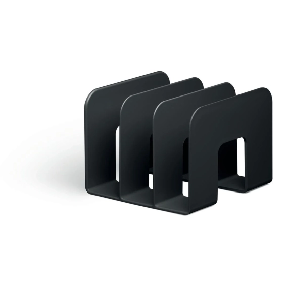 Dette stativet kan brukes på vanlig måte som katalogstøtte, bokstøtte eller brevstativ. ECO katalogstøtte er sertifisert med det tyske miljømerket Blue Angel, som stiller høye krav til miljøvennlig produktdesign og har vært en pålitelig guide til mer bærekraftig forbruk siden 1978. Plasten som dette katalogstøtte er laget av består av en høy andel innsamlet resirkulert plast samtidig som den har lang levetid og er fullt resirkulerbar. Hvert rom er 6,5 cm bredt. Dimensjoner: 21,5 x 16,5 x 21 cm (BxHxD)