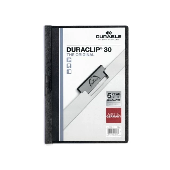 Den unike metallklemmen holder dokumentene på plass. - A4 format - Kapasitet til 30 ark - Farge: sort