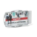 Beskytt dine ID-kort eller adgangskort ved å bruke en kortholder med et tilpasset design og feste, slik at kortene alltid passer uten å være i veien, men likevel er lett tilgjengelige. Denne åpne holderen for to kort er laget av resirkulert plast som er Blue Angel-sertifisert. Det tyske miljømerket Blue Angel stiller høye krav til miljøvennlig produktdesign og har vært en pålitelig guide til mer bærekraftig forbruk siden 1978. Kortholderen kan kombineres med nøkkelsnor, snelle jojoer eller klips, og den kan brukes i både liggende og stående format. Passer for standardkort på ca. 54x87mm.