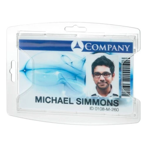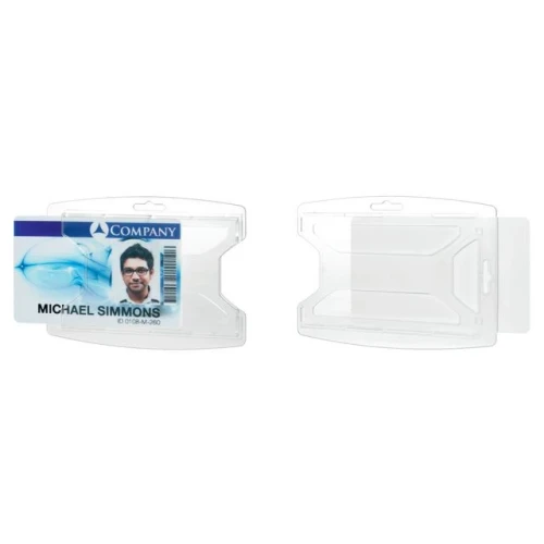 Slitesterk kortholder for daglig bruk. Kortholder laget av slitesterk polypropylen som beskytter kortet. Utstyrt med tommelgrep for enkel tilgang til kortet. Kompatibel med ulike tilbehør som tekstilhalsbånd, jojo eller stroppklemme, og kan brukes både stående og liggende. Passer standardkort 54x85 mm. - Laget av 70% resirkulert polypropylen - Tommelgrep for enkel kortfjerning - Kompatibel med tilbehør
