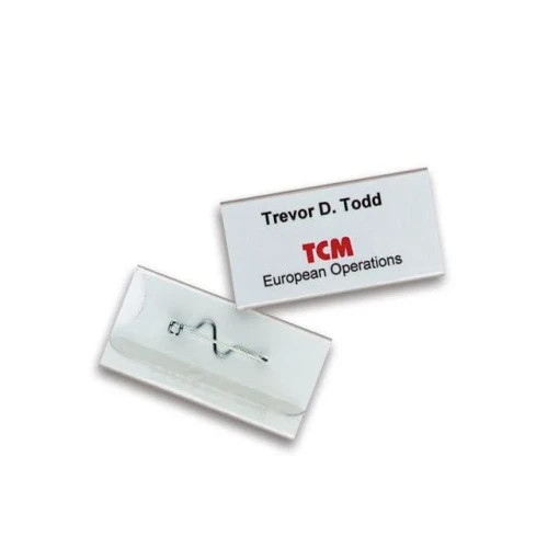 Navneskilt med nål som kan gjenbrukes