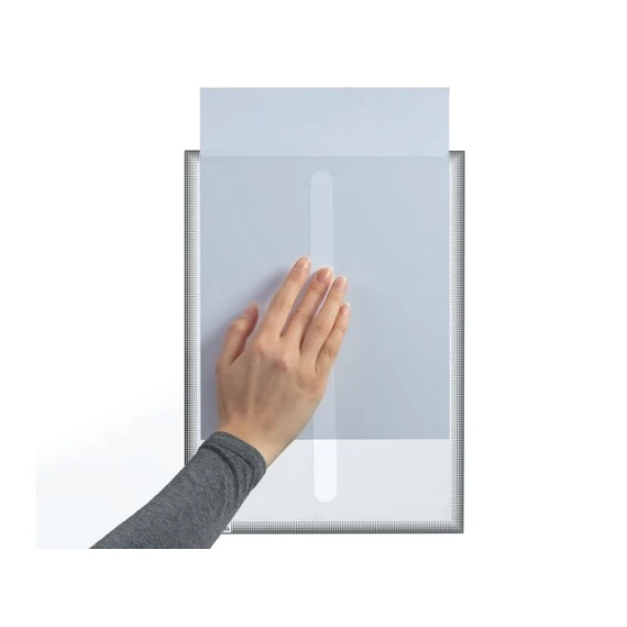 Bruk infolommen for å vise tilbud, reklame og annen informasjon som skal festes på innsiden av salgsdisker, utstillingsvinduer eller bilruter. Lommen festes statisk til rene og glatte glassflater, selv buede, og kan fjernes uten å etterlate rester. Den tåler varme opp til 70 °C og er UV-bestandig i opptil 2 år. En langstrakt åpning langs midten av lommen gjør det enkelt å bytte ut dokumenter. Den kan brukes flere ganger og i både stående og liggende format. Passer for dokumenter i A4-format med indre mål på 303x216 mm. Yttermålene er 323x236 mm. Pakken inneholder 5 stk.
