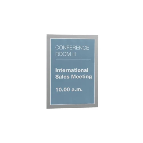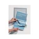 Selvklebende inforamme, Durable® Duraframe magnetisk ramme som kan åpnes, slik at du raskt kan sette inn eller ta ut innholdet. Kampanjer, åpningstider og annen informasjon vises på en profesjonell og elegant måte, f.eks. på glassruter og andre glatte og faste overflater der det er lett å sette opp rammen i stående eller liggende format. - Den fargede rammen ser identisk ut fra begge sider, og ved bruk på glass kan informasjonen leses fra begge sider - Inforammen kan fjernes igjen uten at den etterlater klebemidler på glasset - Til dokumenter i A4-format - Yttermål: 236 x 323 mm -