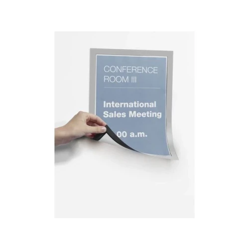 Durable Duraframe® skiltramme med magnetisk bakside. Magnetrammen gjør det enkelt å skifte innhold - Hefter på metall og magnetiske whiteboard m.m. - Kan flyttes etter behov - Format: A4