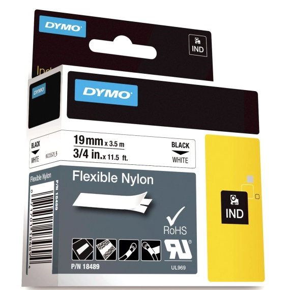 Dymo Tape Rhino nylon sort/hvit 19mm