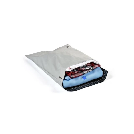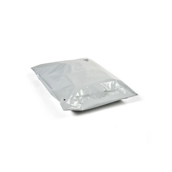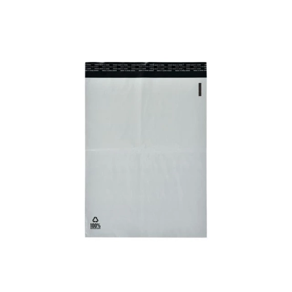 Hvite fraktposer med enkel limklaff. Hvite ugjennomsiktige forsendelsesposer med svart innside. Laget av 100% resirkulert plast. Slitesterk kvalitet, 50 mikron. Posen er vanntett, rivebestandig og bruddsikker. Kraftig selvklebende lukking. Laget av en trelags polyetylenfilm (COEX).