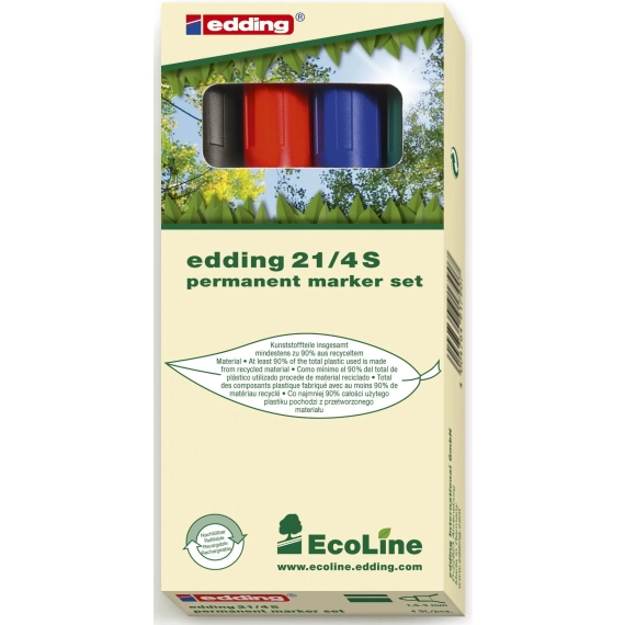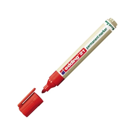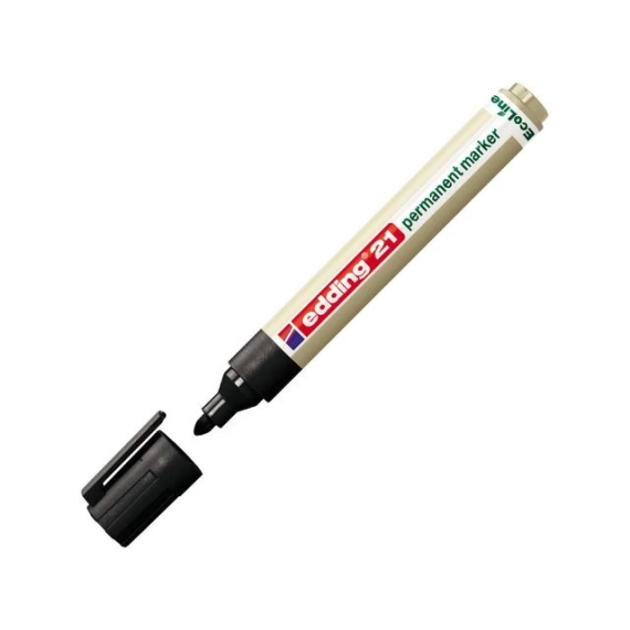 Edding 21 EcoLine permanent merkepenn skriver i permanent blekk på nesten alle materialer, og bruker plast laget av 90 % resirkulerte materialer.