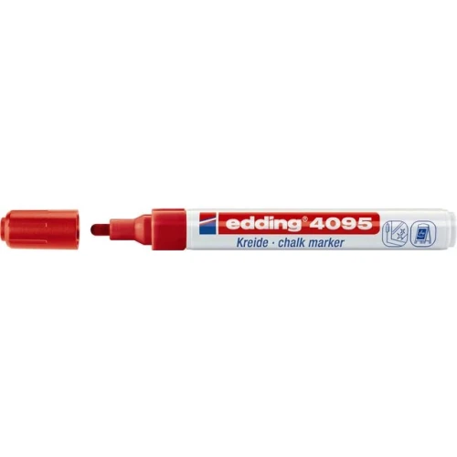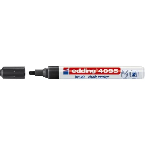Denne krittpennen bruker ikke-permanent blekk som lett kan tørkes av med en fuktig klut. Merkepennen kan brukes på så å si all slags porøst materiale inklusive glass, sorte tavler og speil. Edding 4095 Chalk Marker har en middels tykk kulespiss med en strekbredde på 2–3 mm og passer utmerket til oppgaver som krever større presisjon og nøyaktighet. Det vannbaserte flytende krittet er luktfritt, noe som gjør det veldig behagelig å bruke det. Det har en ventilregulert blekkstrøm for myk og jevn skriving. Merkepennen har en slank og lett utførelse som gjør den ekstremt behagelig og enkel å bruke.