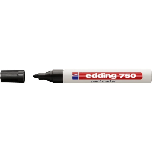 Denne permanente merkepennen bruker hurtigtørkende blekk og er vann- og flekkbestandig. Edding 750-paint marker, permanent merkepenn har en kulespiss med en strekbredde på 2–4 mm. Den kan skrive på nesten alle slags overflater og det spesielle blekket inneholder verken toluen eller xylen, noe som betyr at merkepennen ikke avgir ubehagelig lukt. Aluminiumkroppen veier lite, noe som gjør det komfortabelt og lett å skrive med denne merkepennen.