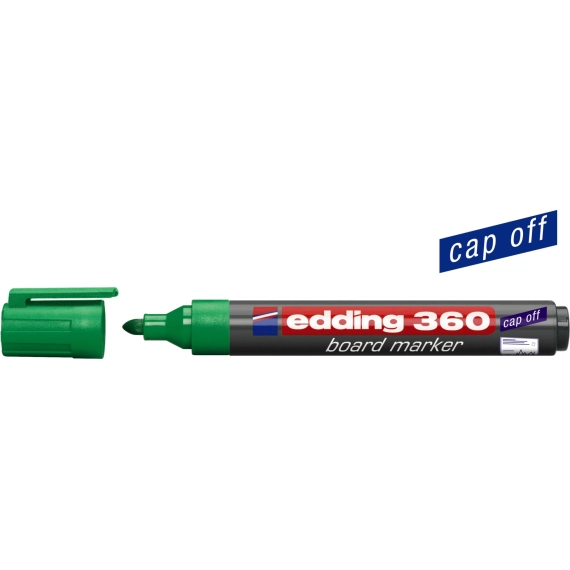 Edding 360-Whiteboardpenn bruker pigmentblekk med svak lukt og skriver jevnt på alle tusjtavler og andre ikke-porøse flater.