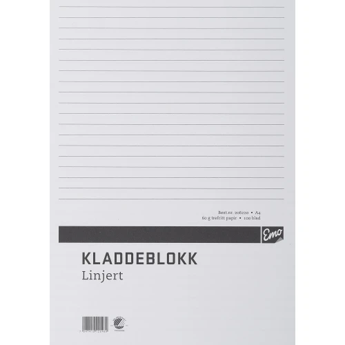 EMO Kladdeblokk A4 60g 100 blad linjer