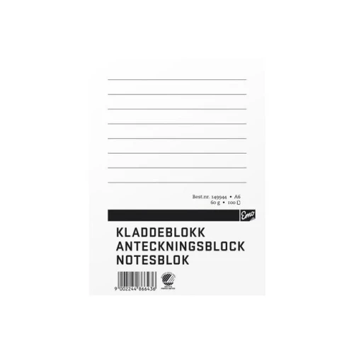 EMO Kladdeblokk A6 60g 100 blad linjer