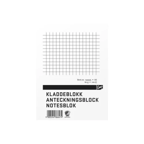 EMO Kladdeblokk A6 60g 100 blad ruter