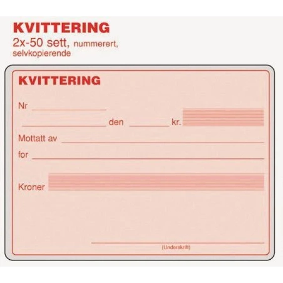 Selvkopierende kvitteringsblokk med fortløpende nummerering