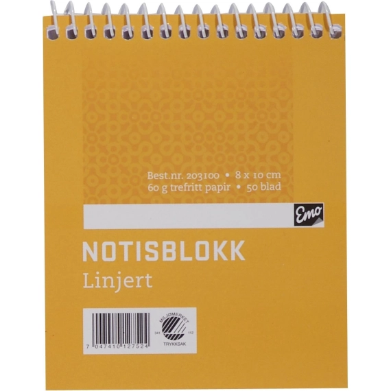 EMO Notisblokk 8x10cm 60g 50bl linj spir
