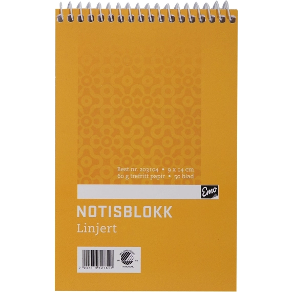 EMO Notisblokk 9x14cm 60g 50bl linj spir