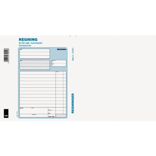 Selvkopierende regneblokk med gjennomgående og fortløpende nummerering