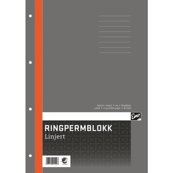 EMO Ringpermblokk A4 70g 80bl ulinjert