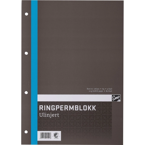 EMO Ringpermblokk A4 70g 80bl ulinjert