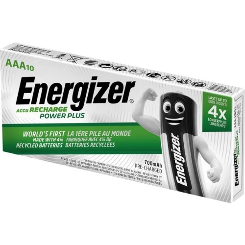 Disse 1,2 V AAA-batteriene er laget for å vare lenger enn vanlige batterier og for å minimere avfallsmengden både på kontoret og hjemme. De kan lades flere hundre ganger uten å miste kraften og effektiviteten. Battericellene med nikkel-metallegering er trygge og holdbare og fungerer perfekt med enheter som bruker både mye og lite strøm. De kan brukes til digitalkameraer, trådløse spillsystemer samt større enheter. De oppladbare Energizer Power Plus-batteriene NH12 700 mAh er pålitelige med lang levetid, og er dermed et miljøvennlig valg.
