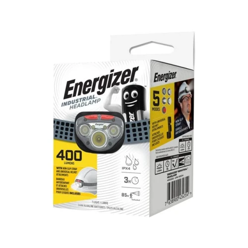 Energizer Industrial® hodelykter er designet med proffe yrkesutøvere i tankene. Når du trenger å ha begge hender fri, er dette pålitelige verktøy for å belyse arbeidsstedet. Energizer® Rechargeable Industrial Headlight Fulladet på 4 timer (slå lykten av under lading) USB-ladekabel er inkludert Energizer® Smart Dimming kontrollerer lysintensiteten Sikker, glisikret hodestropp holder seg på plass VisionGuard øker gradvis lysintensiteten for redusert påkjenning på øynene Røde og grønne LEDer bevarer nattsynet for utendørs prosjekter Vannbestandig med bruddsikkert glass Industriell hodelykt som er opp til 15 ganger sterkere enn standard LED Utvidet brukstid i Low-modus 7 lysmoduser: High Low Wide Wide Low Red Flashing Red Green Bruker Lithium ion fastmontert batteri : : : : : : : : Vekt: 120g
