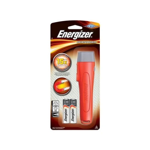 Lys og økonomisk, den nye Energizer Magnet LED er et godt valg for en hverdagslommelykt. En festet håndleddsnøre og brukervennlig knappbryter. Pluss at magneten holder lyset til metalloverflater - flott for oppbevaring eller håndfri bruk. - Den går i 50 timer på 2 alkaliske batterier i AA-størrelse, og livstids LED som aldri trengs å skiftes ut - Bruker 2 stk. AA-batterier (følger med)
