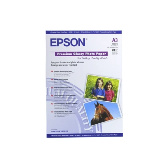 A3 Premium Glossy Photo Paper: 255g/m2 Epsons topkvalitets fotopapir har en højglans finish, som er perfekt til at printe dine favoritbilleder og forstørrelser på - for at opnå de mest ultimative resultater. Dette papir er smudsafvisende og vandafvisende med en blød, klar hvid, resin belagt overflade. Antal ark 20 Passer til følgende printere Stylus Photo: 1290 / 1270 / R1800 / 1290 / 1270 / R1400 / R1800 / R1900 / R2400