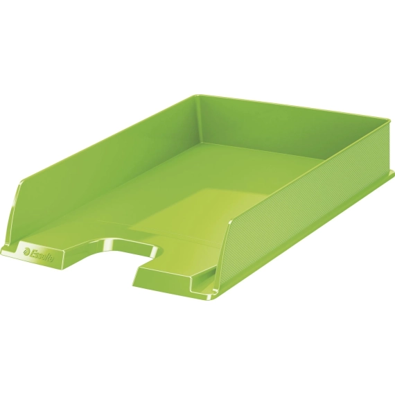 Kan stables vertikalt eller trinnvis i 3 posisjoner Stort gripefelt for enkel tilgang til dokumentene Skråstilt front som holder dokumentene på plass og plass for etiketter både til høyre og venstre Forsterkede kanter og sider for stabilitet og styrke Tar opptil 370 A4 ark når den er stablet\x0a