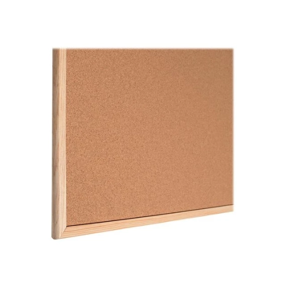 Korktavle med finkornet kork på en tykk og solid porøs plate med treramme.