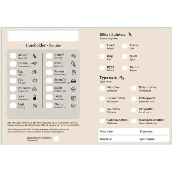 Allergen etikett med vellum avtagbart lim. - Format: 160x109 - 40mm kjerne - 250 etiketter pr rull,