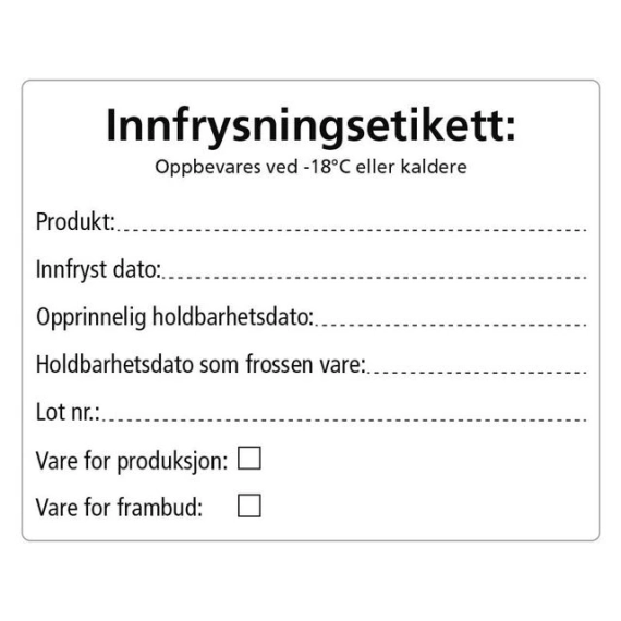 Fortrykt etikett innfrysing - Format 102x128mm, 500 etiketter pr rull. Fryselim. Kjerne: 40mm