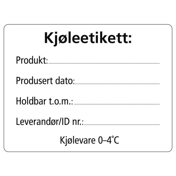 Fortrykt etikett kjøleetikett - Format 102x128mm, 500 etiketter pr rull. Fryselim. Kjerne: 40mm