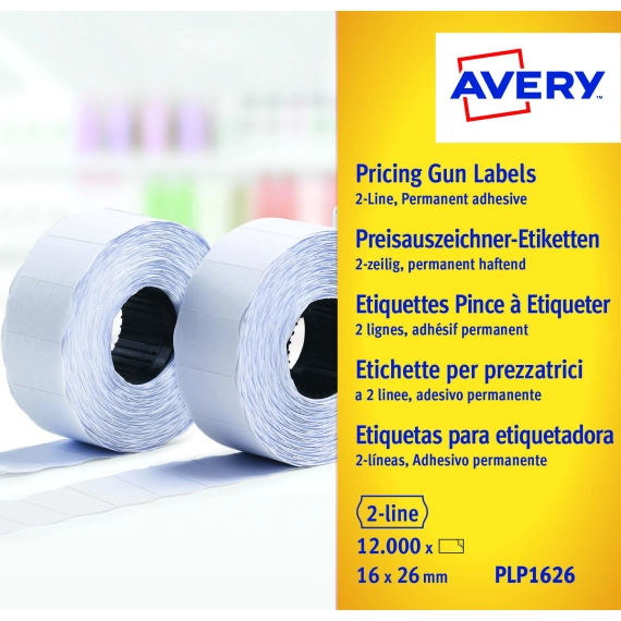 Prisetikettene har den tradisjonelle prismerkeformen, og de har en sikkerhetsperforering som hindrer manupilasjon av merket. På øverste linje av prisetiketten er det plass til maks. åtte alfanumeriske tegn, og på den nederste linjen kan den skrive maks. 10 alfanumeriske tegn. Pakken inneholder 10 ruller á 1 200 prisetiketter, totalt 12 000 etiketter.