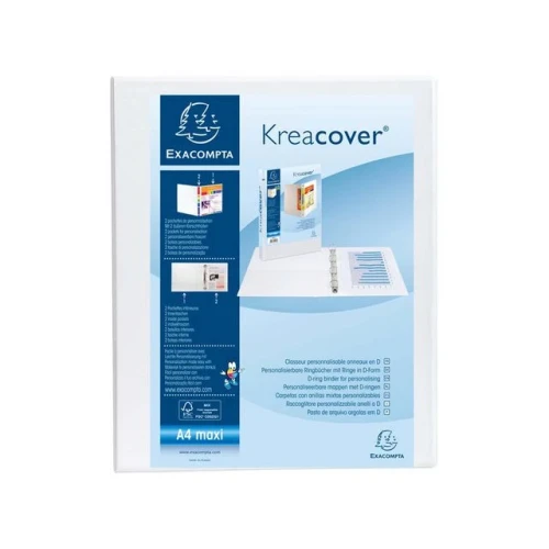 Exacompta Kreacover®-innstikkperm har gjennomsiktige lommer på forsiden, baksiden og ryggen, slik at du kan tilpasse permen og raskt identifisere innholdet. Kreacover er en rask løsning av høy kvalitet for skalerbare presentasjoner. Permen har et kraftig innbundet omslag med tilpasningslomme på forsiden og ryggraden av permen. Som en bonus har permen 2 innerlommer for oppbevaring av løse blader. Omslagsetiketter er enkle å tilpasse takket være Kreaman-applikasjonen som er tilgjengelig på exacomptas nettsted. - Materiale: kartong, dekket i PP. - Størrelse: 32x27,3 cm. - Ryggbredde: 38 mm. - Kapasitet (ark 80g): 185 stk. - 4 D-ringer, 20 mm. - FSC-sertifisert.