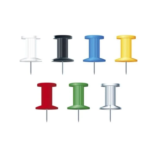 Exacompta kartnåler leveres i en dispenserboks. Fin og solid spiss i messingstål. Disse kartnålene er velegnet for festing av viktige beskjeder og papirer på oppslagstavler, og er laget for å feste papir og annet materiale på et mykt underlag, for eksempel korktavler. - Mål: 7x10 mm - Eske med 25 stk.