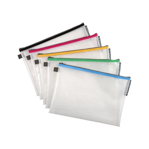 Oppbevaringslomme i plast med glidelås - Format: A4 - Ass farger
