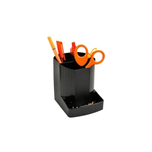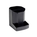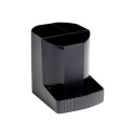 Penneholderen Exacompta Mini-OCTO oppbevarer skriveredskapene innenfor rekkevidde på arbeidsstasjonen eller pulten, hjemme eller på kontoret. Med 4 rom har penneholderen Exacompta Mini-OCTO nok av plass til blyanter, penner og andre skrivesaker. Denne plassbesparende penneholderen er av polypropylen som gjør den ekstra sterk og holdbar. Den åpne toppen gir deg rask tilgang til skriveredskaper som penner, blyanter, viskelær og sakser der du trenger dem. Denne holderen er dessuten laget av gjenvunne drikkeflasker og er Blue Angel-sertifisert som miljøvennlig. - Holder til skrivesaker - Med 4 rom - Laget av slitesterk polypropylen - Serie: Ecoblack - Sertifisering: Blue Angel - Farge: Svart - Mål: 123 x 90 x 110 mm