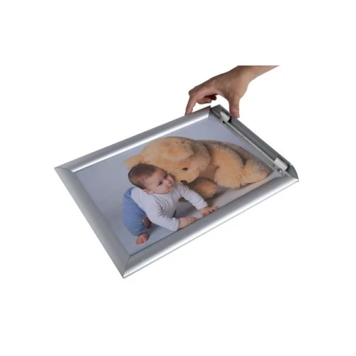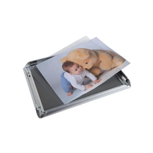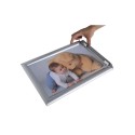 Exacompta aluminiums veggramme A3 for enkel plakatskifte. Denne A3 veggrammen åpnes forfra ved å løfte de brede skrå aluminiumskantene. Den antireflekterende skjermen sikrer god synlighet fra alle vinkler. Festes enkelt til veggen med medfølgende skruer. - Mål: 427x331x26mm - Bruk KREAMAN for personlige skilt