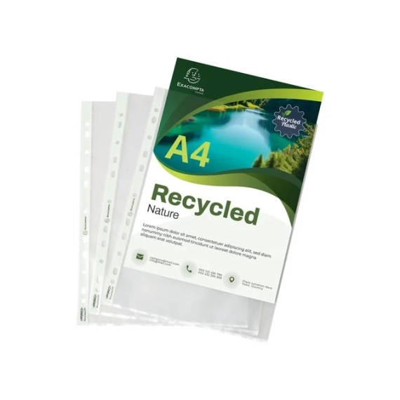 Beskytter dokumentene dine med slitesterke, resirkulerte plastlommer fra EXACOMPTA. EXACOMPTA plastlommer i A4-format, laget av 120 µm resirkulert polypropylen, gir pålitelig beskyttelse for dokumenter. Hullingen gjør dem klare for innsetting i permer, noe som gir enkel organisering på kontoret eller hjemme. - A4-format - 120 µm tykkelse for slitestyrke - Laget av resirkulert polypropylen - Hull for innsetting i permer - Pakke med 25