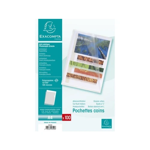 Plastomslag med L-formet åpning på topp og høyre side, med hakk for enkel innsetting av dokumenter. Ideell for arkivering av A4-ark. Exacompta plastomslag er ideell for å oppbevare dokumentene dine over lang tid. Omslagene er rivebestandig. - Åpnes fra både toppen og høyre side. - Enkel tilgang til dokumentet med gripefelt. - Størrelse: 22x31 cm. - Materiale: kornet PP-plast. - Tykkelse: 120 my. - Copysafe. - A4-format. - Farge: klar.
