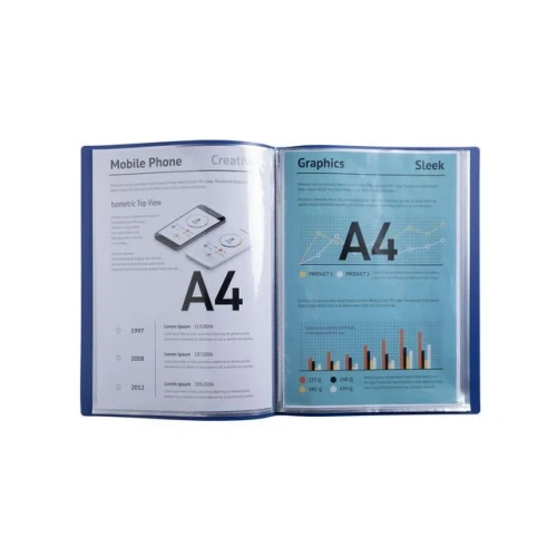 Gi kontoret nytt liv med serien som er trendy og omfattende, egnet for alle sorterings- og organisasjons behov på kontoret, hjemmekontoret og utdanningsmiljøet: som også tar hensyn til miljøet. Disse displaybøkene er perfekte for å lagre alle dokumentene og papirene dine. - Omslagene er laget av glanset resirkulert PP - Krystallklare lommer med høy gjennomsiktighet -