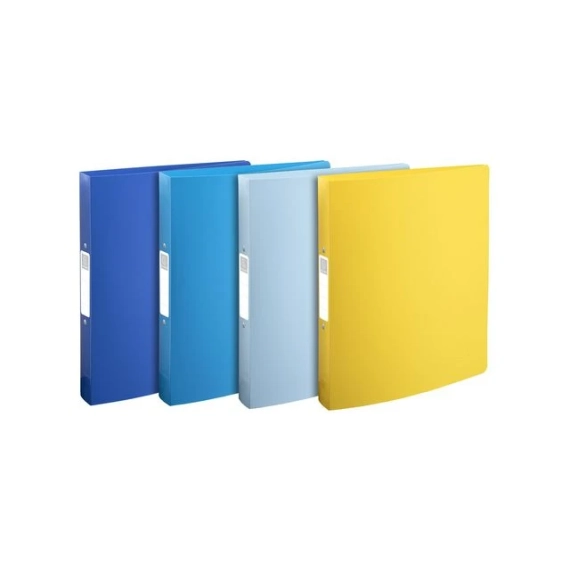 Ringperm med 30 mm ryggrad og en 2 -ringsmekanisme. Passer for A4 -ark. - 4 livlige trendy farger safran, marineblå, lyseblått og turkis.