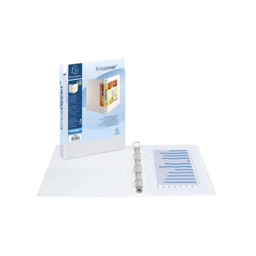 Kreacover PP ringperm, A4 maxi. 2 utvendige lommer og en klar horisontal lomme på innsiden. - Kreacover ringperm er laget av polypropylen - Størrelse: A4-dokumenter i plussstørrelse (32x29cm) - Ryggbredde: 75 mm - 4 D-ringer, 50 mm - D-ringmekanisme som gir bedre lagringskapasitet, opptil 460 ark